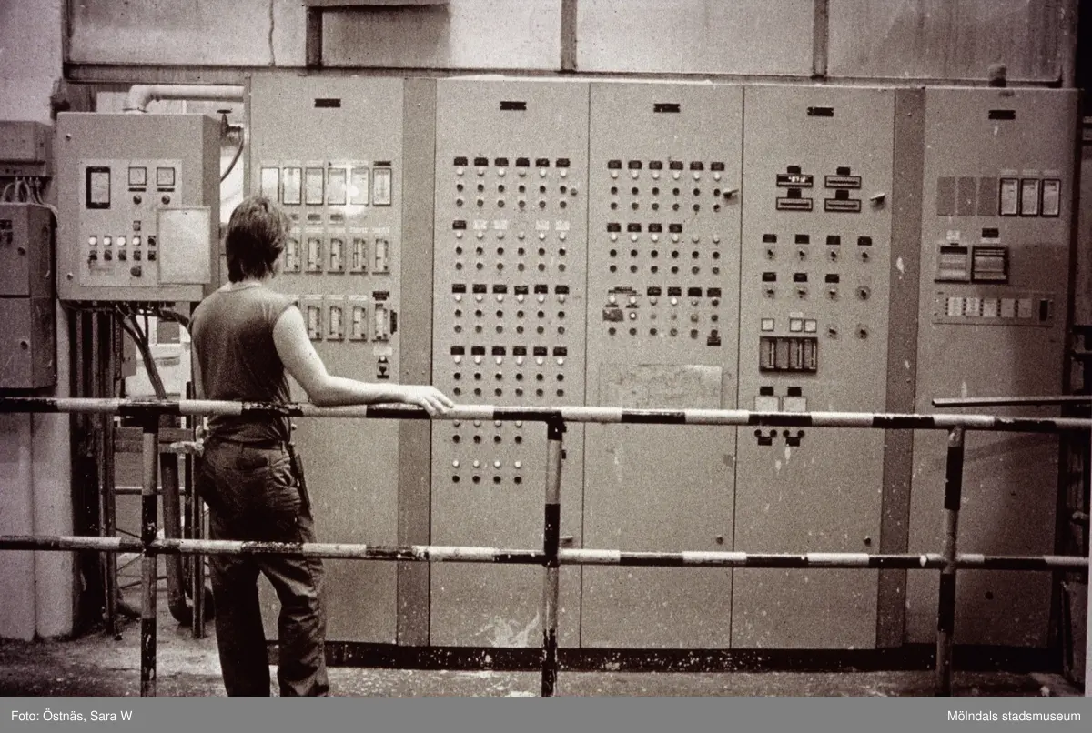 Man i arbete vid kontrollpanel på Papyrus i Mölndal, år 1990.
