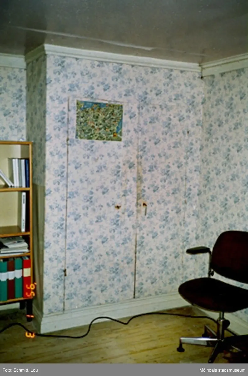 En blåblommigt tapetserad vägg inne på Gunnebo slott, maj 1995.