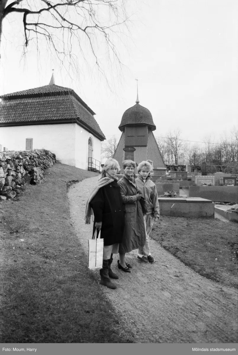 Kållereds kyrka första söndagen i advent, år 1983. Kållereds kyrka är från 1200-talet. Klockstapeln från 1691.