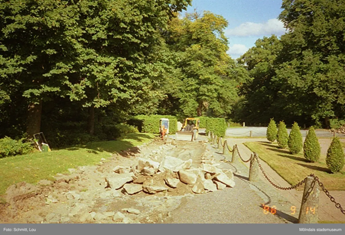 Grävarbeten, norra sidan av parken, vid Gunnebo slott 1988.