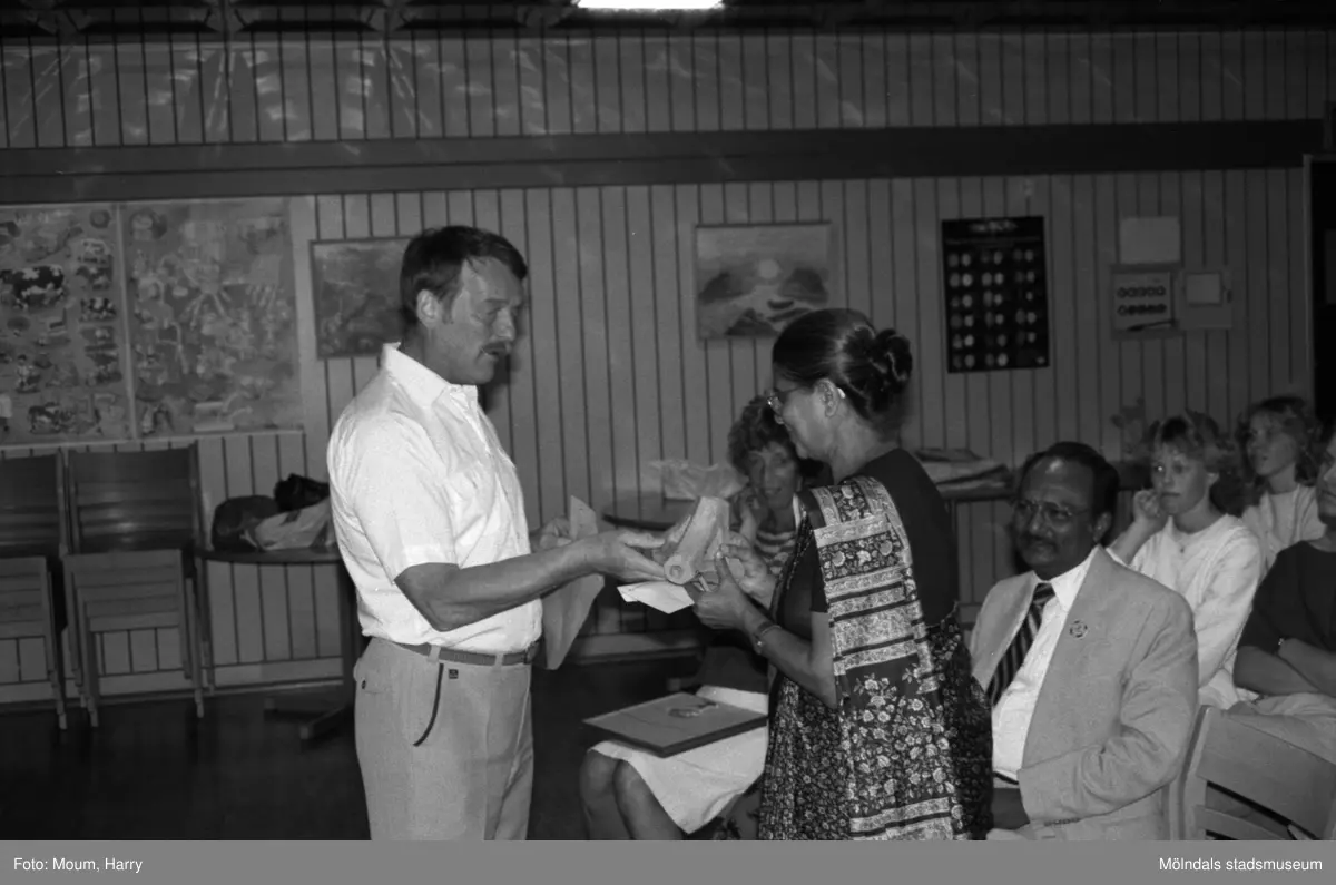Indiskt besök på Ekenskolan, Kållered, år 1985. "Olle "Smen" Svensson uppvaktade de indiska gästerna i Kållered."