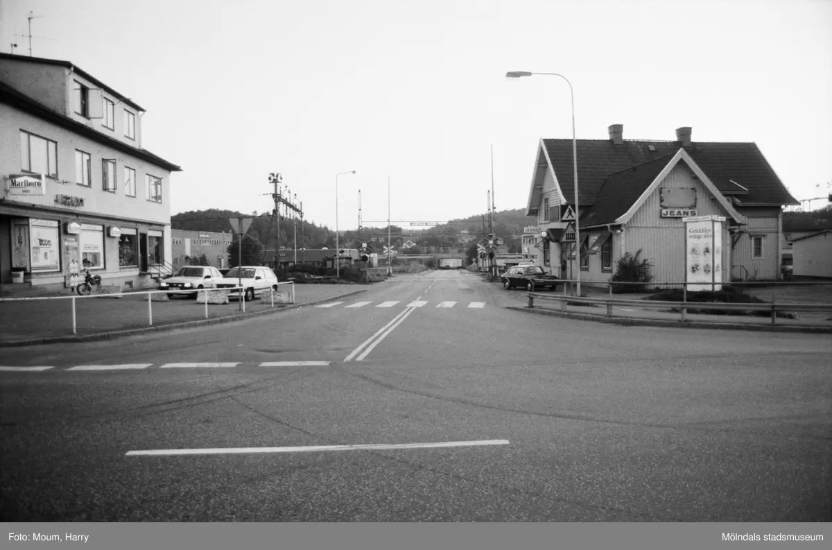 Planering för trafikomläggning i Kållered, år 1985. Labackavägen i riktning mot väster. Vy från Gamla Riksvägen. "Vid samtliga alternativ skall Labackavägen schaktas ner under järnvägen."