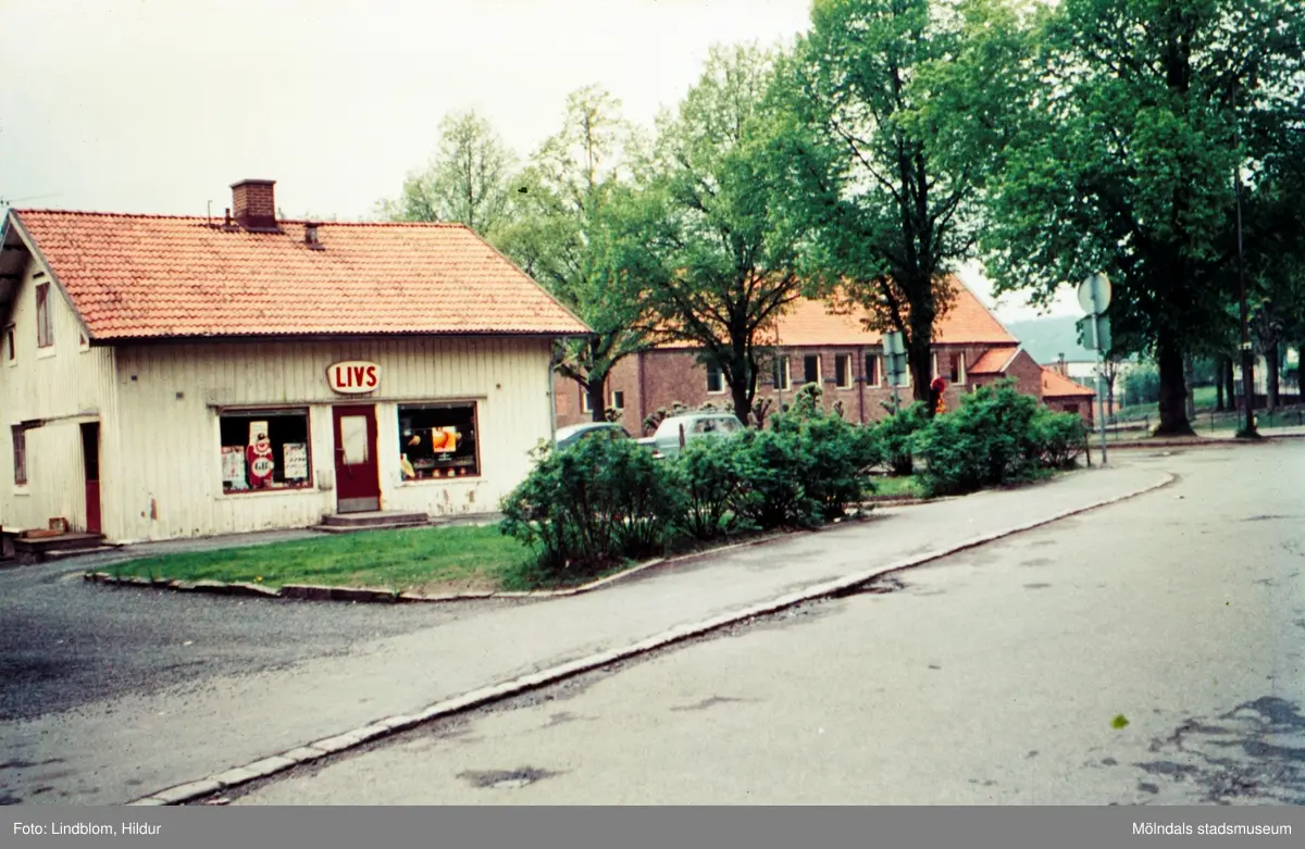 Knut "Dahlbjörks livs" med adress Trädgårdsgatan 5, Mölndal, 1970-tal. I bakgrunden ses även Kvarnbyskolan.