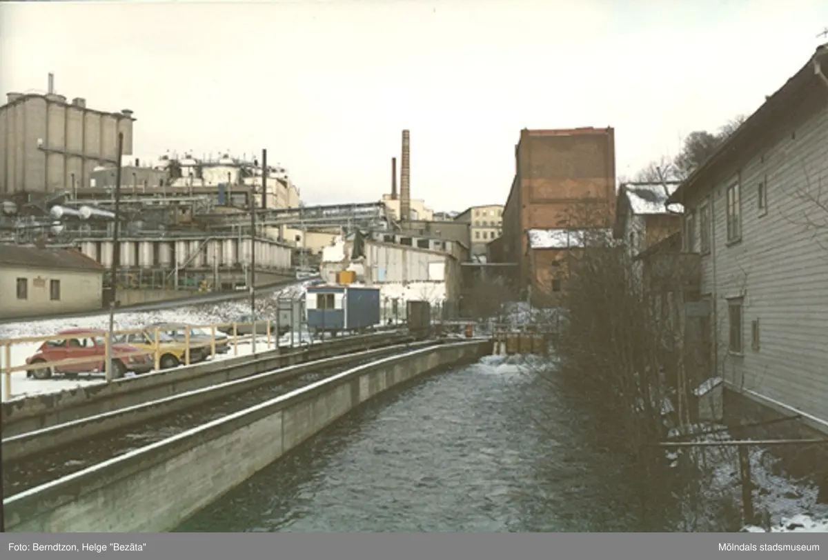Mölndalsfallen från Forsebron. Till vänster syns Soab. 1970-talet.