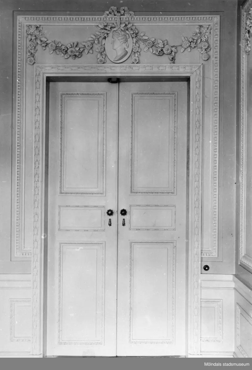 Dubbeldörr med girlangrelief ovanför i Östra förmaket. Gunnebo slott 1930-tal.