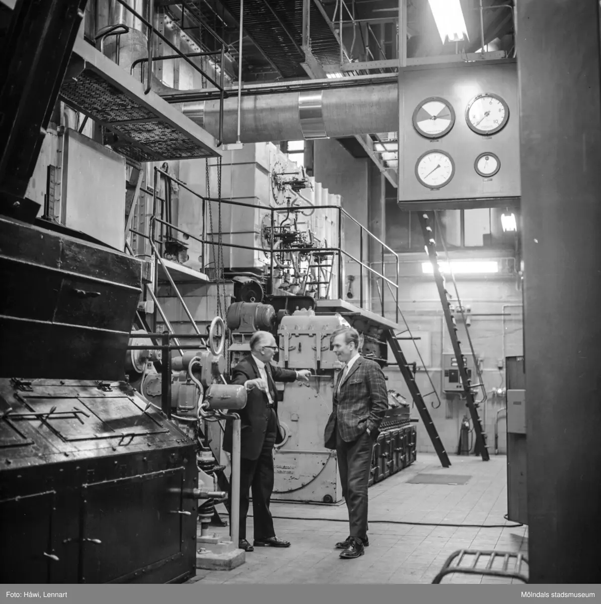 Papyrus direktör William Tibell och ingenjör Klas Kronkvist i panncentralen på pappersbruket Papyrus i Mölndal, 14/12 1970.