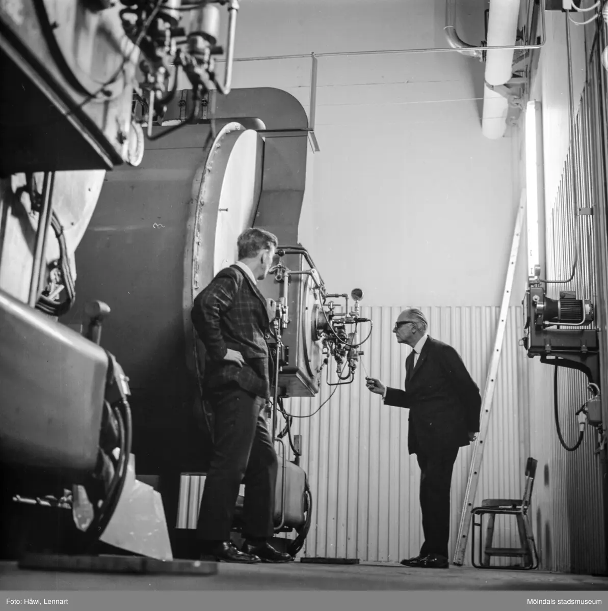Papyrus direktör William Tibell och ingenjör Klas Kronkvist. Pappersbruket Papyrus i Mölndal, 14/12 1970.