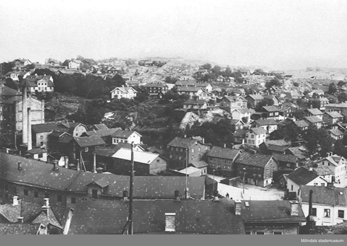 Mölndals Kvarnby, okänt årtal. I mitten till vänster skymtas Stora Götafors och Nymans kvarn.
