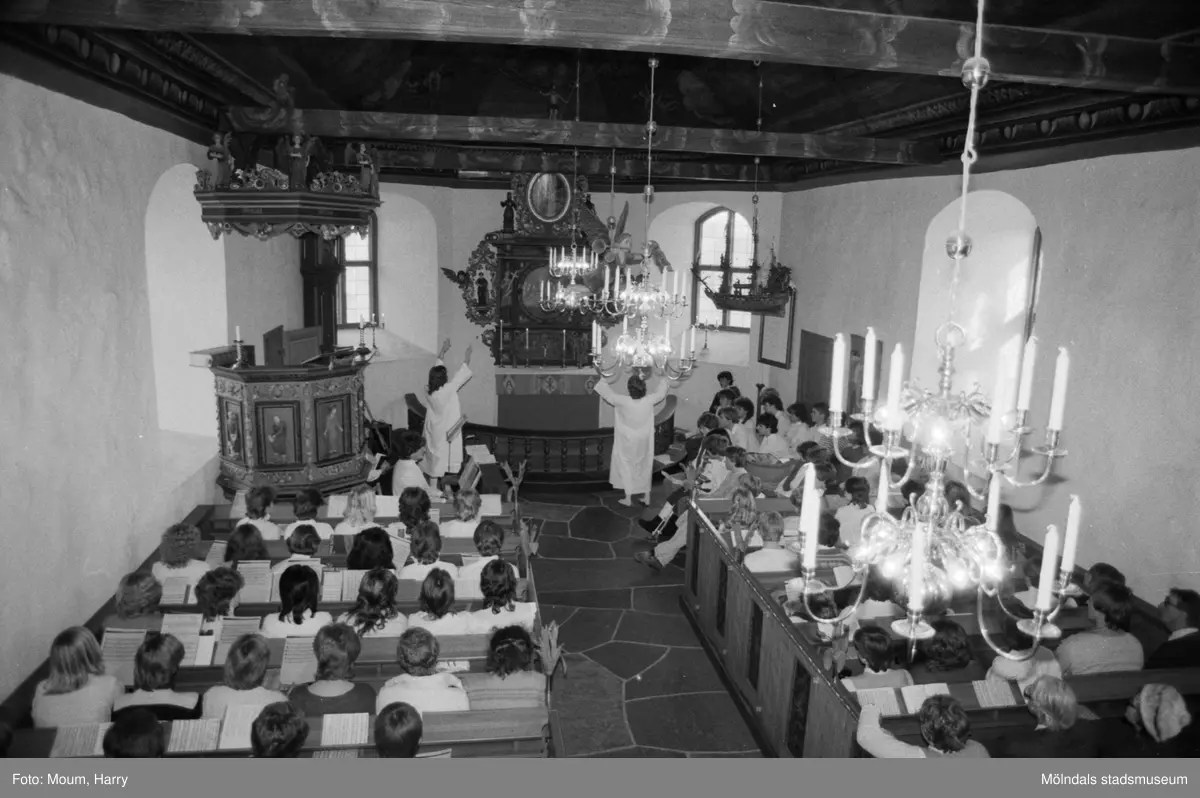 Gospelkören Seier från Mölndals vänort i Norge gästar Kållered, år 1984. Musik och sång i Kållereds kyrka.