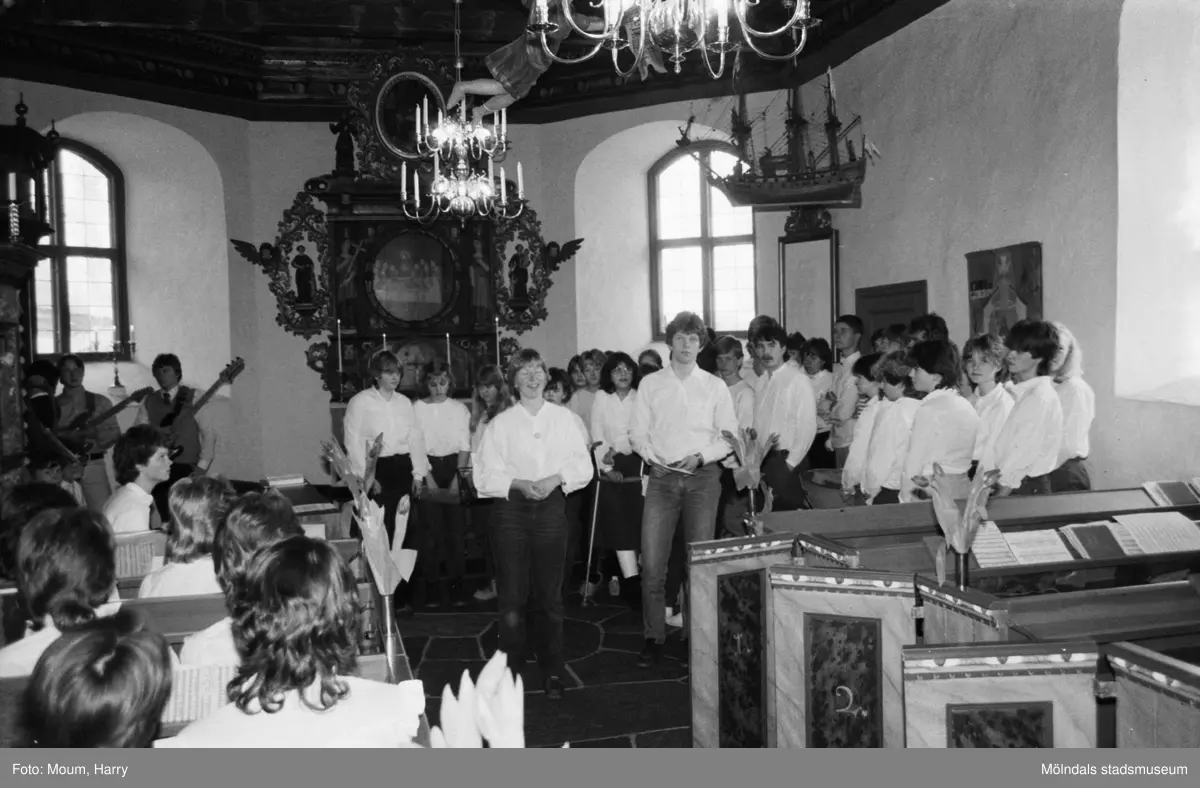 Gospelkören Seier från Mölndals vänort i Norge gästar Kållered, år 1984. Musik och sång i Kållereds kyrka.