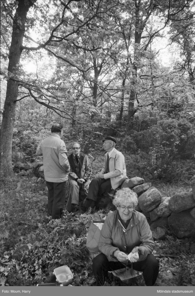 Gökotta i Kållered, år 1984. Främst Eivor Bjerrhede. Bak fr. vä. Thure Bjerrhede, Pelle Bjärkå, Gustaf Carlsson, alla Kållered.