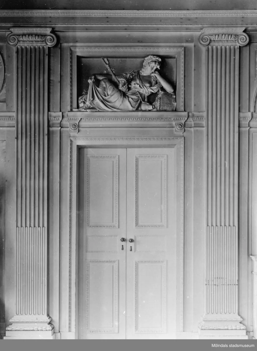 Dubbeldörr med relief "Boskapsskötsel" (över matsalsdörren) i Salongen. Gunnebo slott 1930-tal.