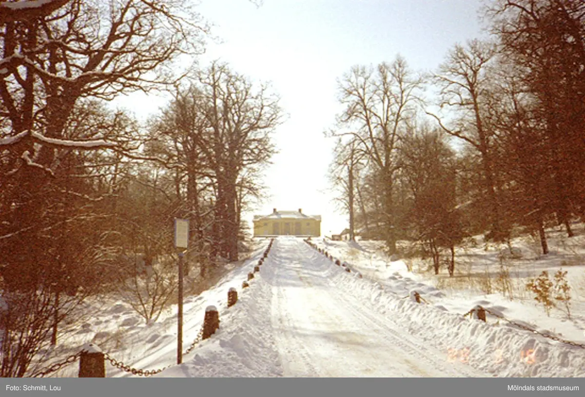 Vy mot Gunnebo slott vintertid, sett från "Runde sten".