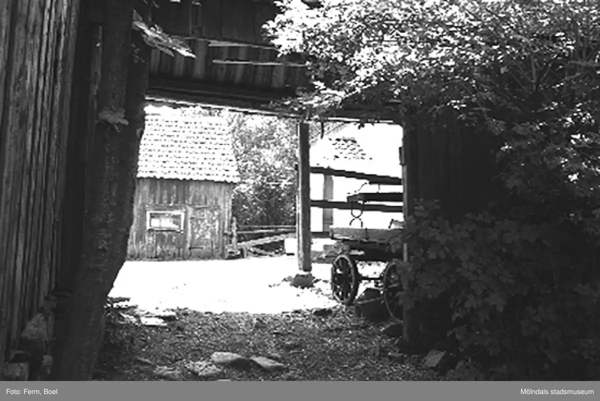 Ett portlider som leder in till en stensatt gårdsplan. Högen 2:1/2:2 i Kållered, 1992-06-30.