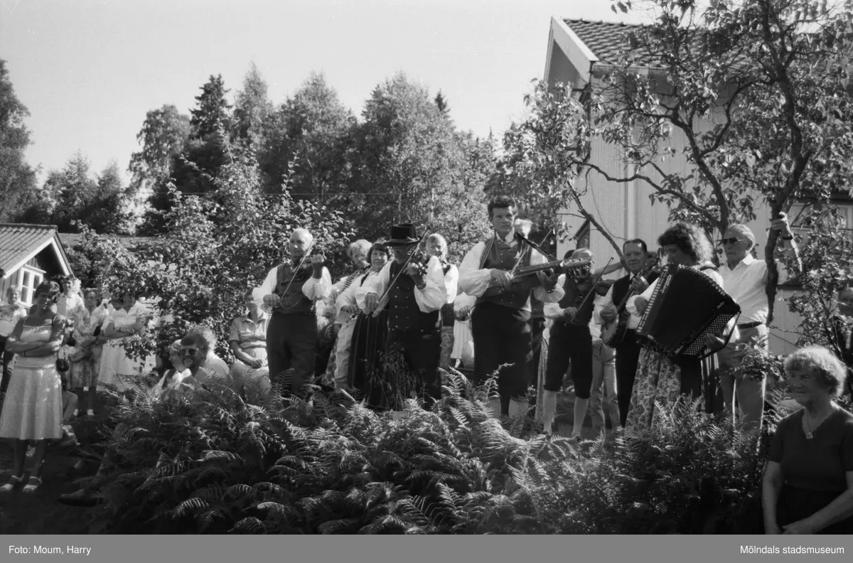 Lindome Hembygdsgille firar 20-årsjubileum på Börjesgården i Hällesåker den 23 juli år 1983. Hällesåkers spelmanslag.