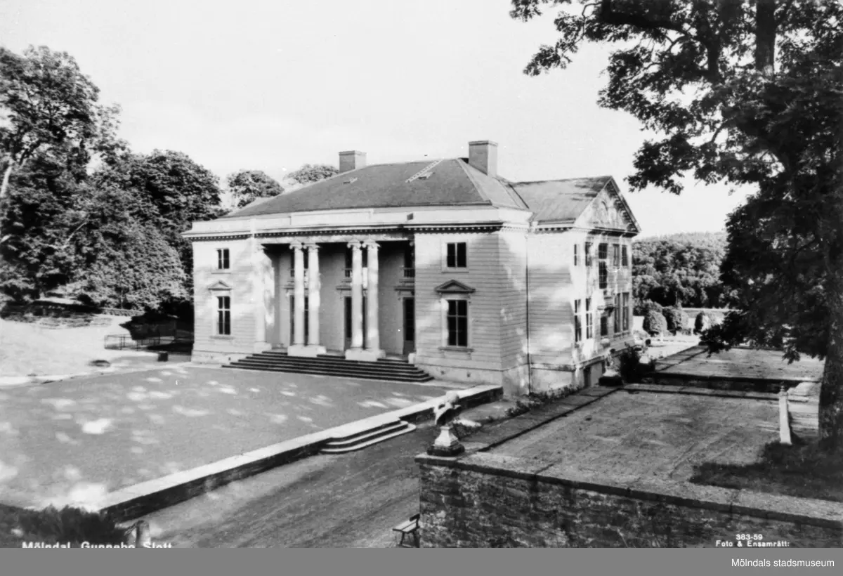 Gunnebo slott från nordväst, närmare bestämt från en plats strax norr om Kejsareterrassen. 1950-tal.