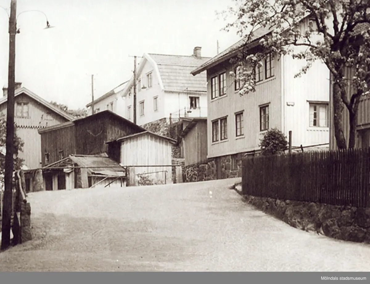 Roten M 18 (idag: Stockliden 1), okänt årtal. Huset var en f.d. polisstation i Karl Johans församling i Göteborg. Det revs, fraktades på pråmar till Mölndalsbro och återuppbyggdes igen år 1879 av Karl Magnus Andersson (1836 - 1892) i Mölndals Kvarnby. Relaterat motiv: 2007_0452.