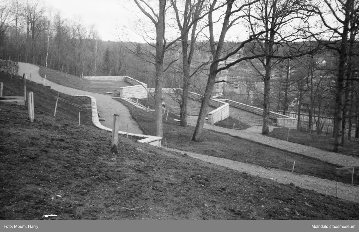 Den nya utbyggnaden av Kållereds kyrkogård, år 1983. "Utbyggnaden i sluttningen mot Livered är nu klar i Kållered."