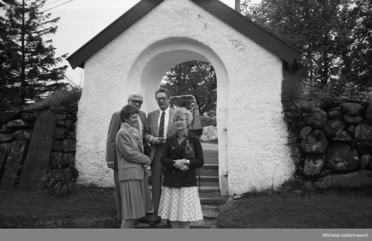 Helgmålsbön med musik i Kållereds kyrka, år 1983. Utanför kyrkan till vänster ses Kerstin och Åke Magnusson, Kållered, och till höger Kerstin och Harry Moum, Kållered.