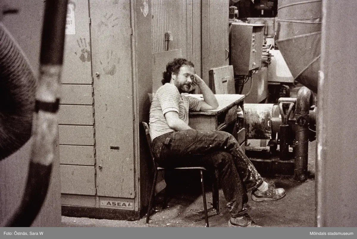 Juris Kuvalds tar en liten paus från arbetet på Papyrus i Mölndal, år 1990.