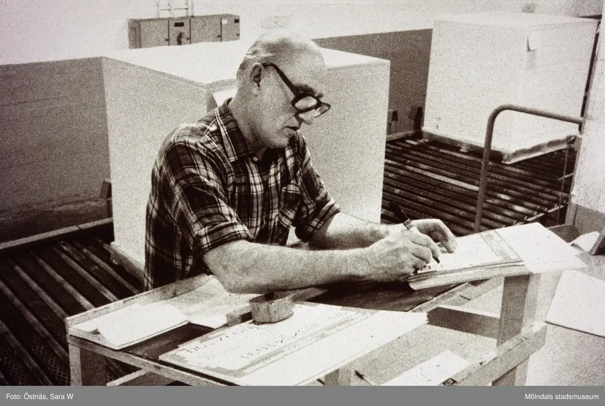 Gotthard Olsson i arbete på Papyrus i Mölndal, år 1990.