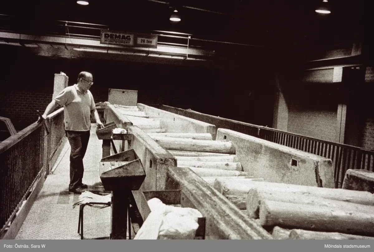 Eero Pikkuhookana övervakar transport av massaved på Papyrus i Mölndal, år 1990.