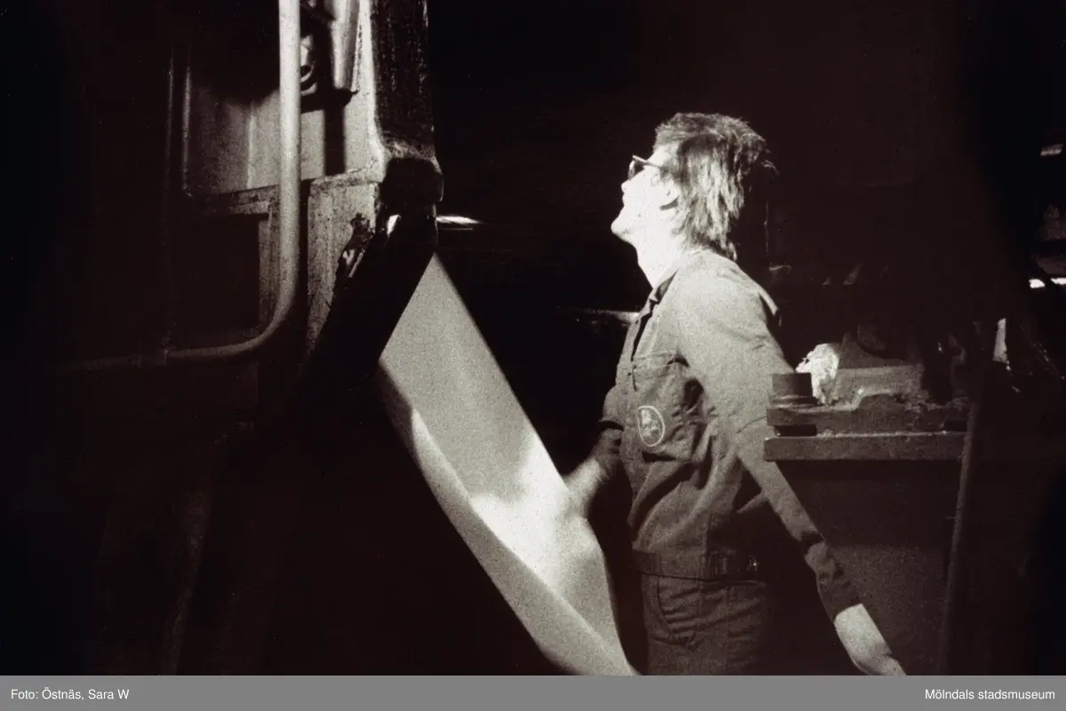 Anders Severed i arbete vid banbrott på Papyrus i Mölndal, år 1990.