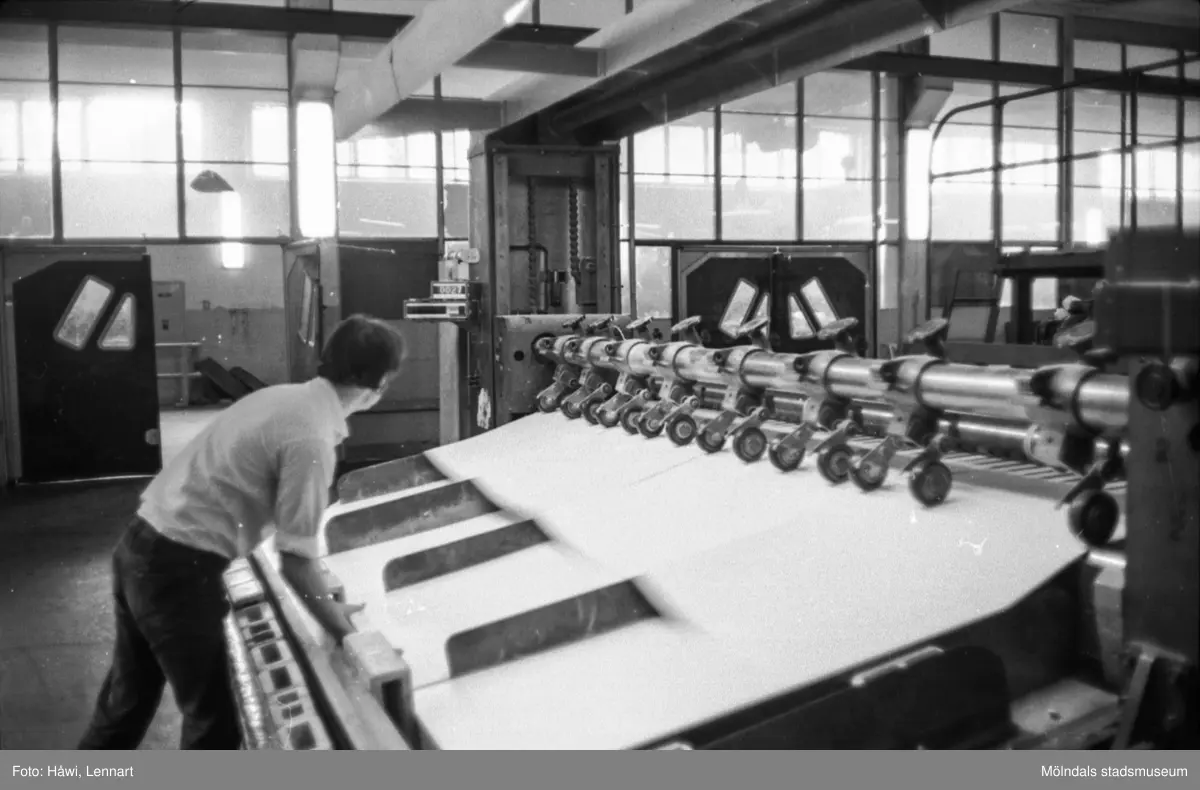 Man i arbete vid maskin på pappersbruket Papyrus i Mölndal, hösten 1970. KM 2, byggnad 6.
