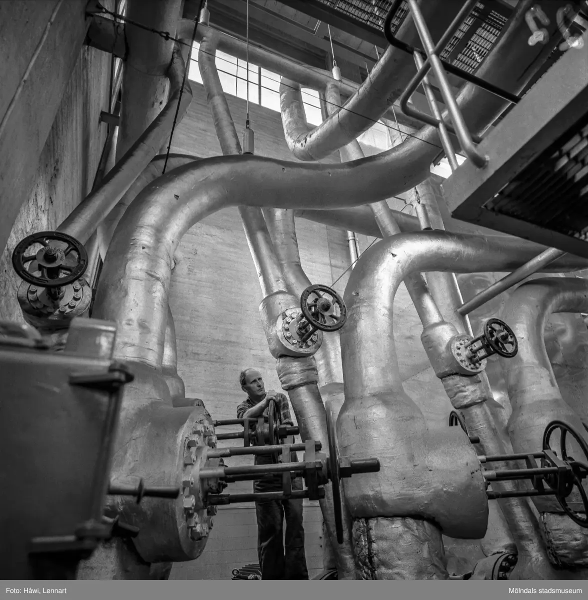 Man i arbete vid ångcentralen (Byggnad 14) på pappersbruket Papyrus i Mölndal, 13/5 1955.