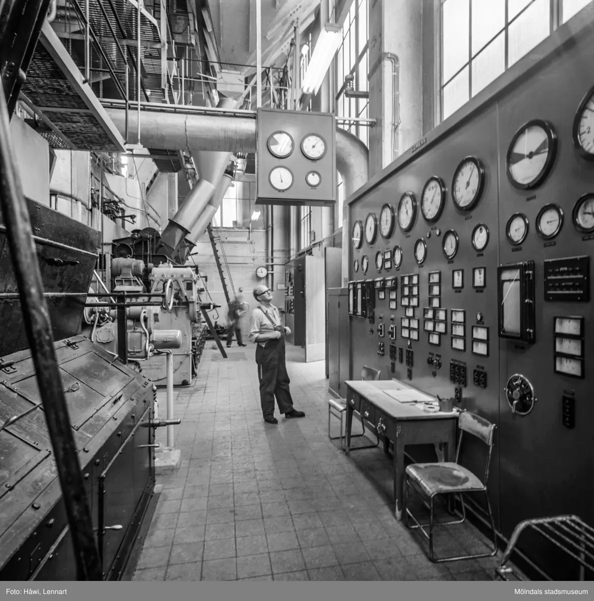 Man i arbete vid ångcentralen, Byggnad 14, på pappersbruket Papyrus i Mölndal, 5/9 1968.