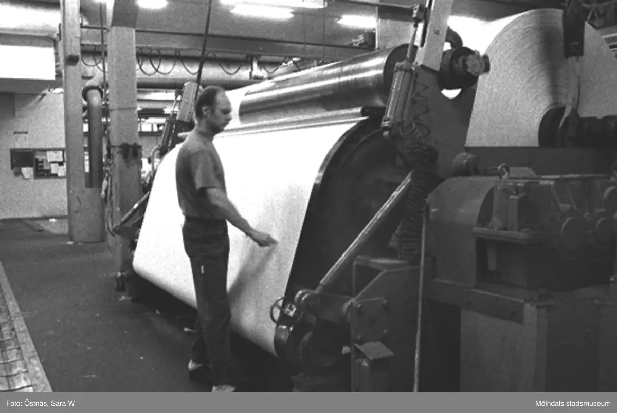 Bilden ingår i serie från produktion och interiör på pappersindustrin Papyrus, 1980-tal.
