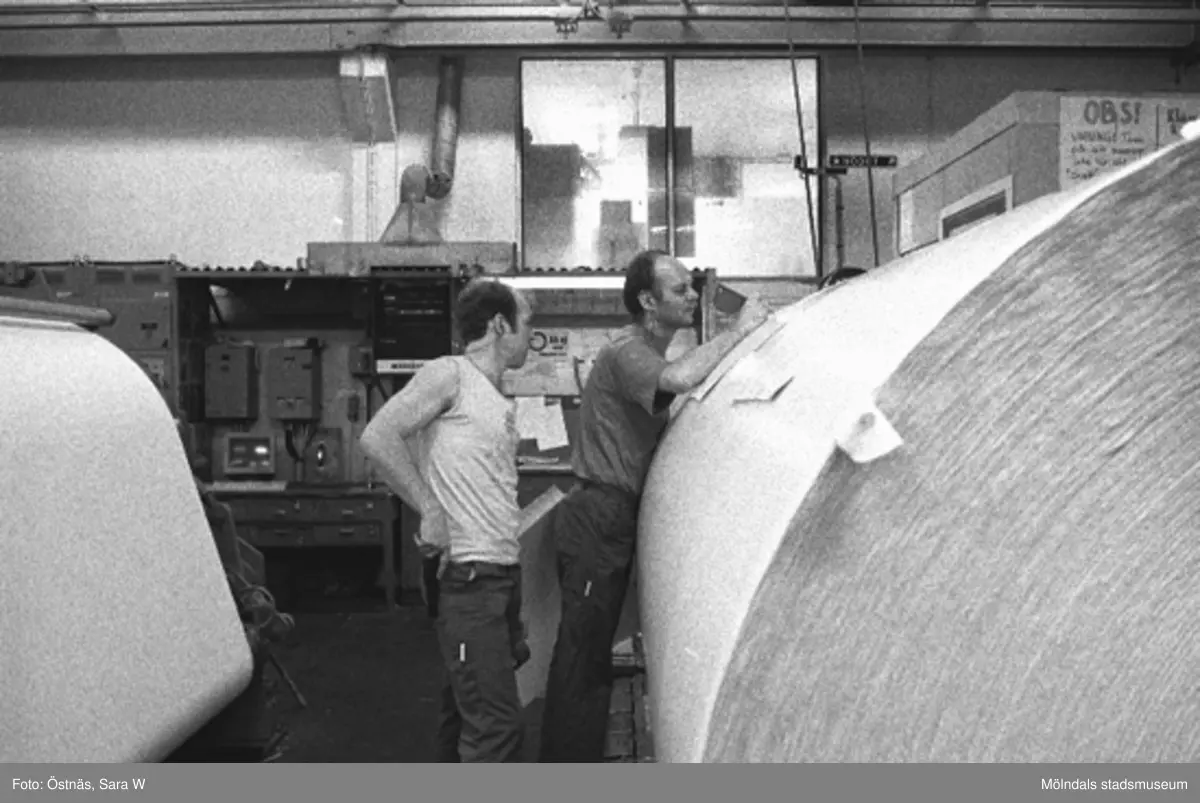 Bilden ingår i serie från produktion och interiör på pappersindustrin Papyrus, 1980-tal.