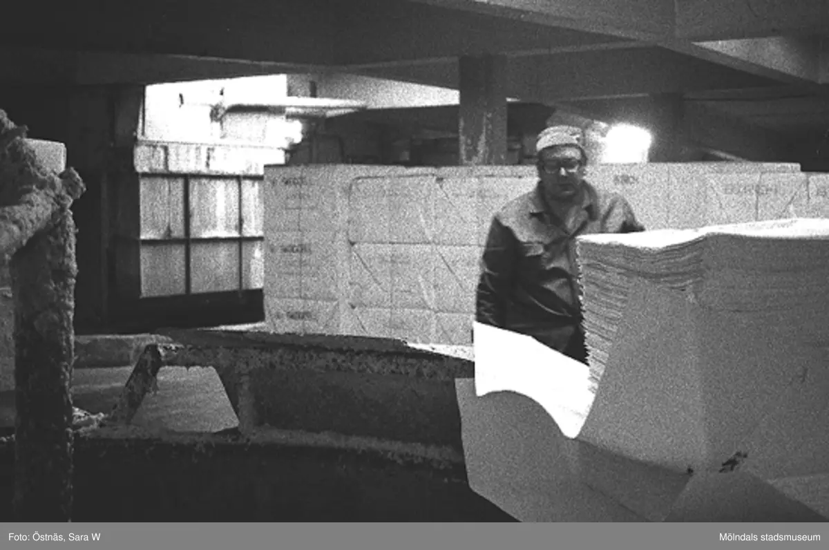 Byggnad 6, 1980-tal. Bilden ingår i serie från produktion och interiör på pappersindustrin Papyrus.