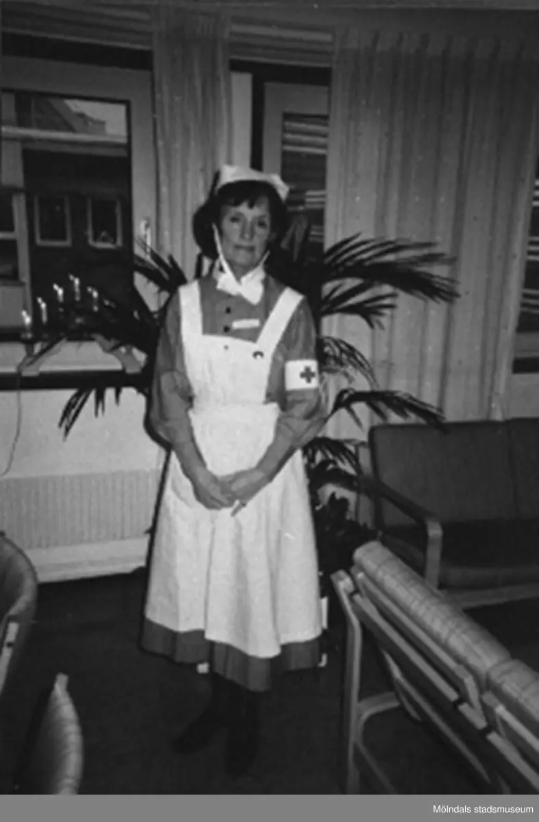 Inger Petersén iklädd sin sjuksköterskeuniform, cirka 2004.