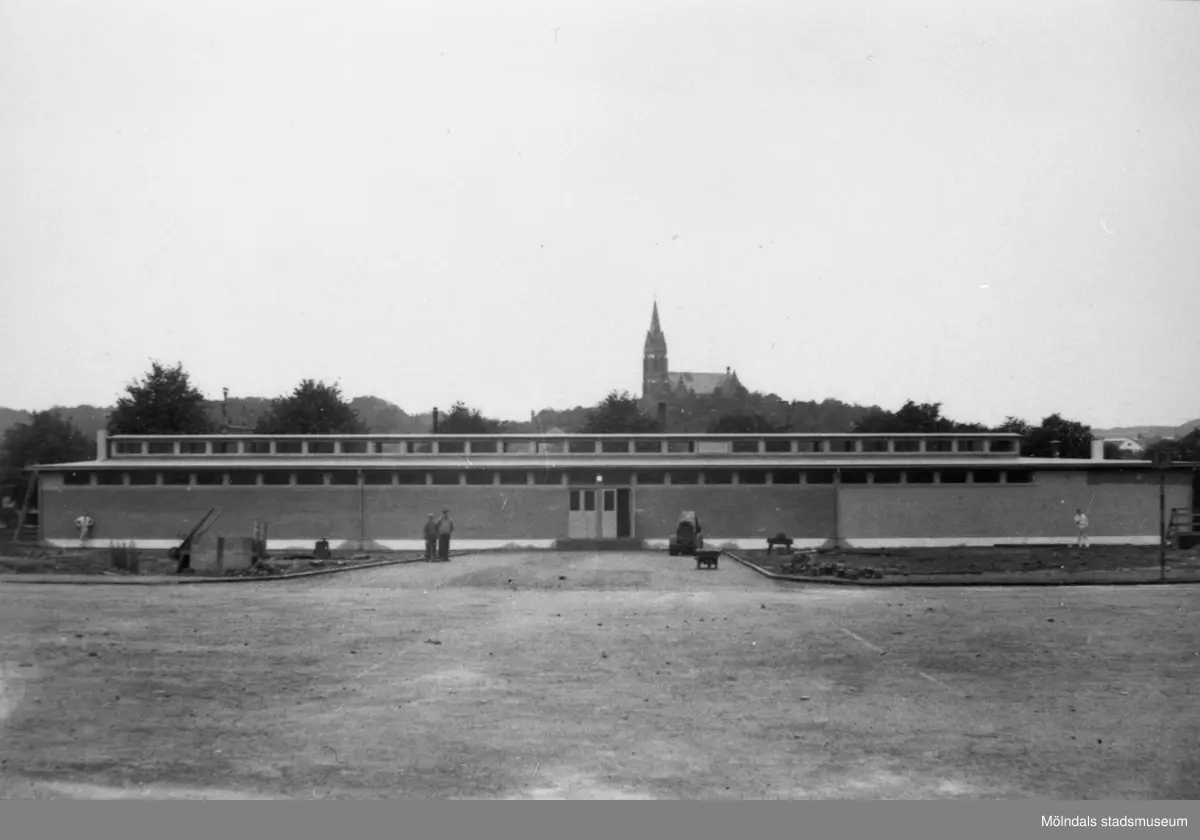 Saluhallen, sett från Nya torget i väster, stod färdig 1937. Alla arbeten runtomkring är ännu inte slutförda. I bakgrunden ser man Fässbergs kyrka.