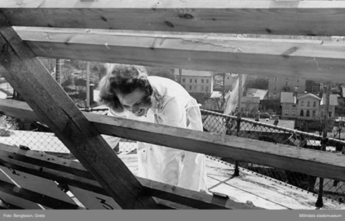 Olje- och lackfärger väderprovas på silostaket, år 1943-1946 på SOAB-Svenska Oljeslageri AB, Kvarnbygatan i Mölndal.
