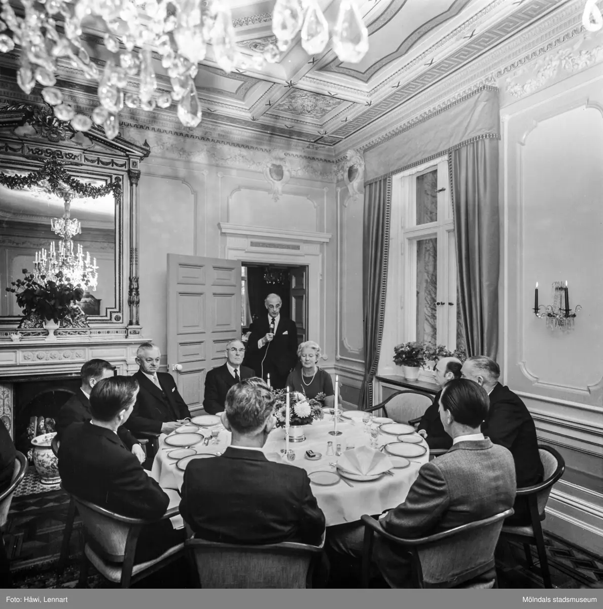 Utdelning av minnesgåvan vid pappersbruket Papyrus 75-årsjubileum. Middag på Villa Papyrus i Mölndal, 31/10 1970.