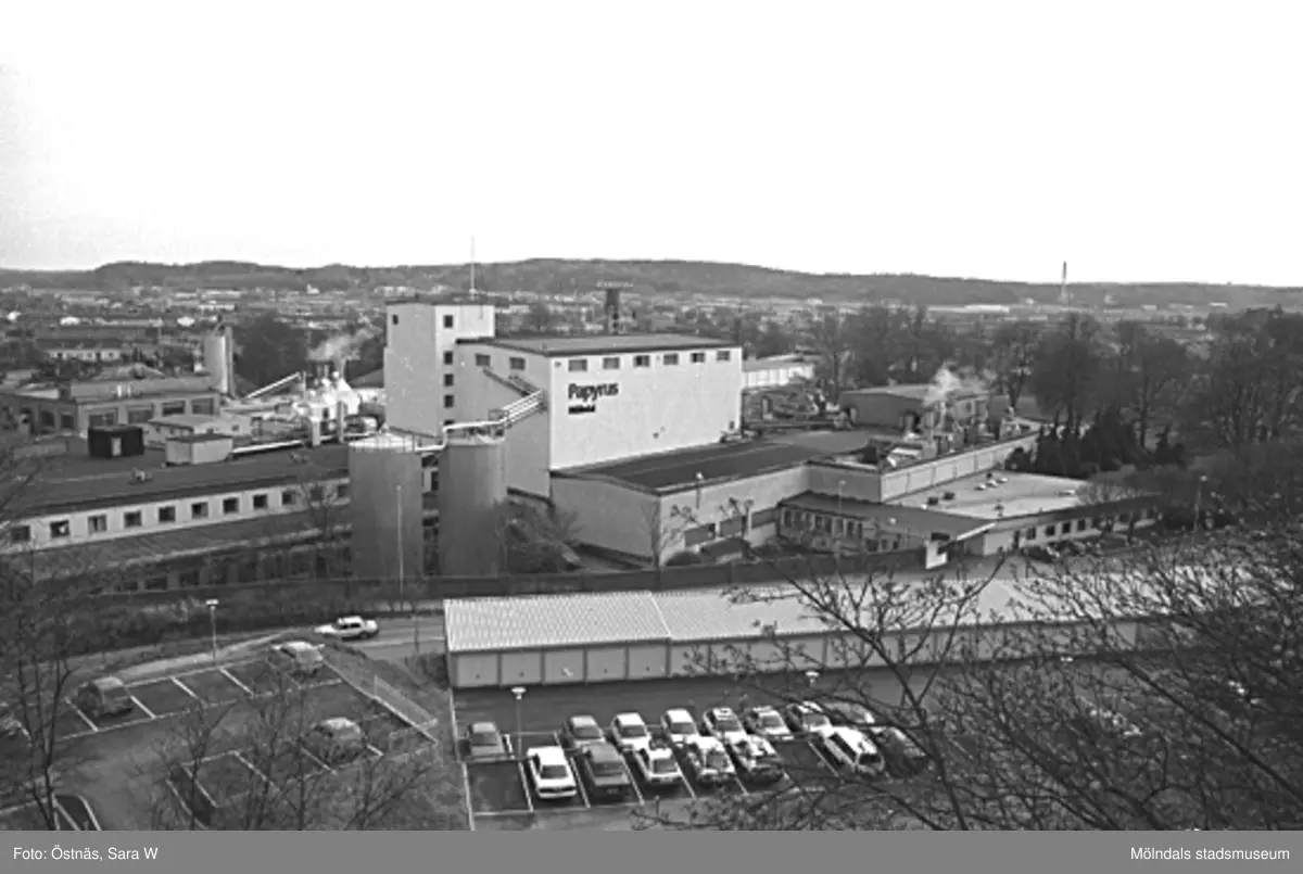 Titel: Vy över Papyrus. Bilden ingår i serie från produktion och interiör på pappersindustrin Papyrus, 1980-talet.