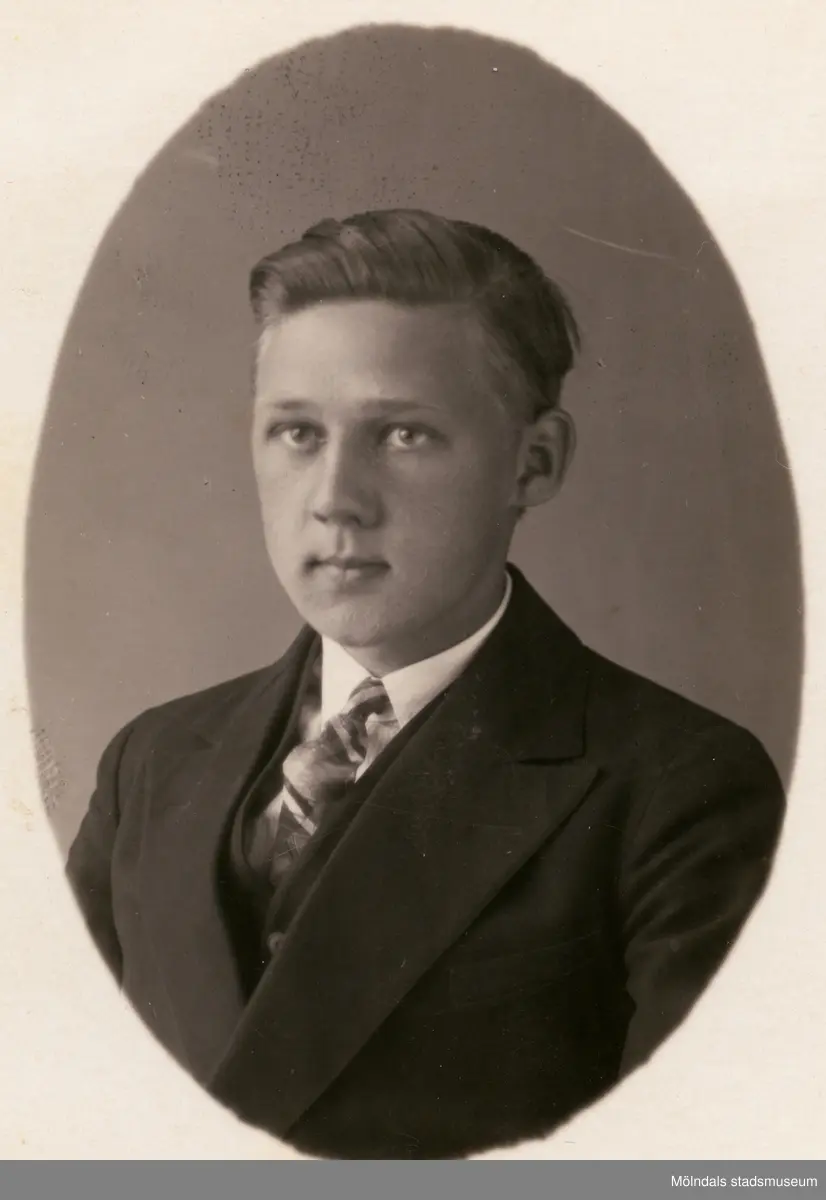 Porträttfotografi av Åke Börjesson (född 1910). Fotografiet är taget 15/6 1930. Åke är på bilden 20 år gammal.
