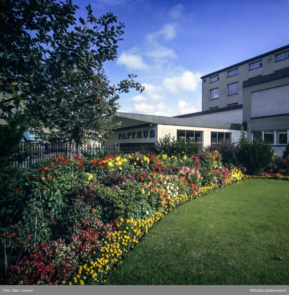 Pappersbruket Papyrus port sedd ifrån parken. Mölndal, 16/9 1966.