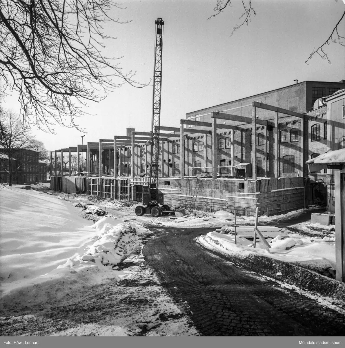 Titel: Byggnad nr 19 och 2 på pappersbruket Papyrus i Mölndal, 16/2 1963. Tillbyggnad 1962-1963.
