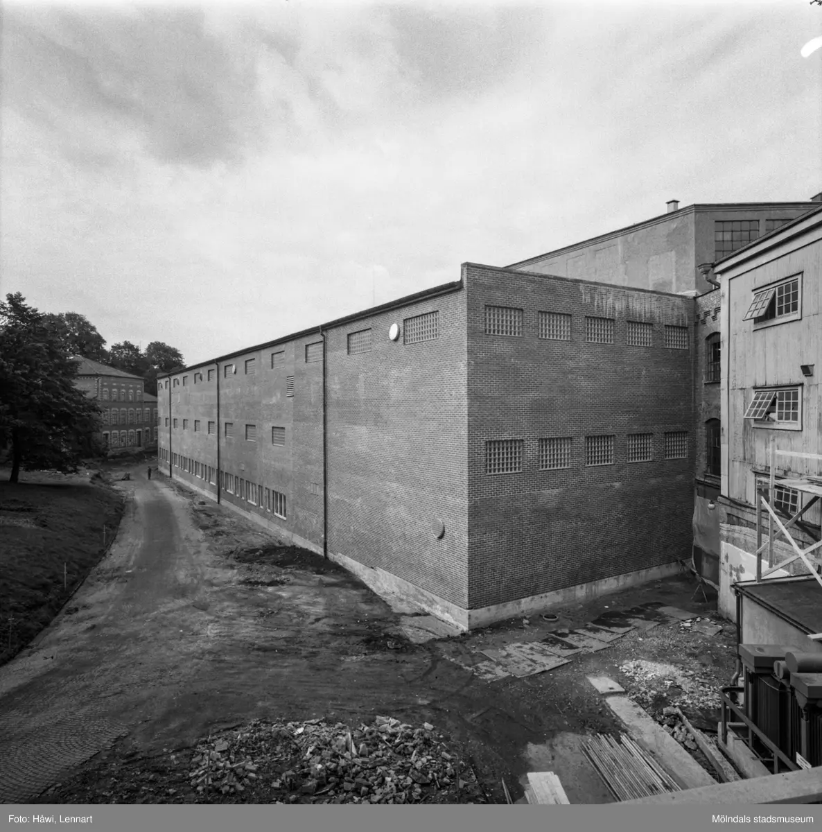Byggnad nr 20 på pappersbruket Papyrus i Mölndal, 12/9 1963. Exteriör.