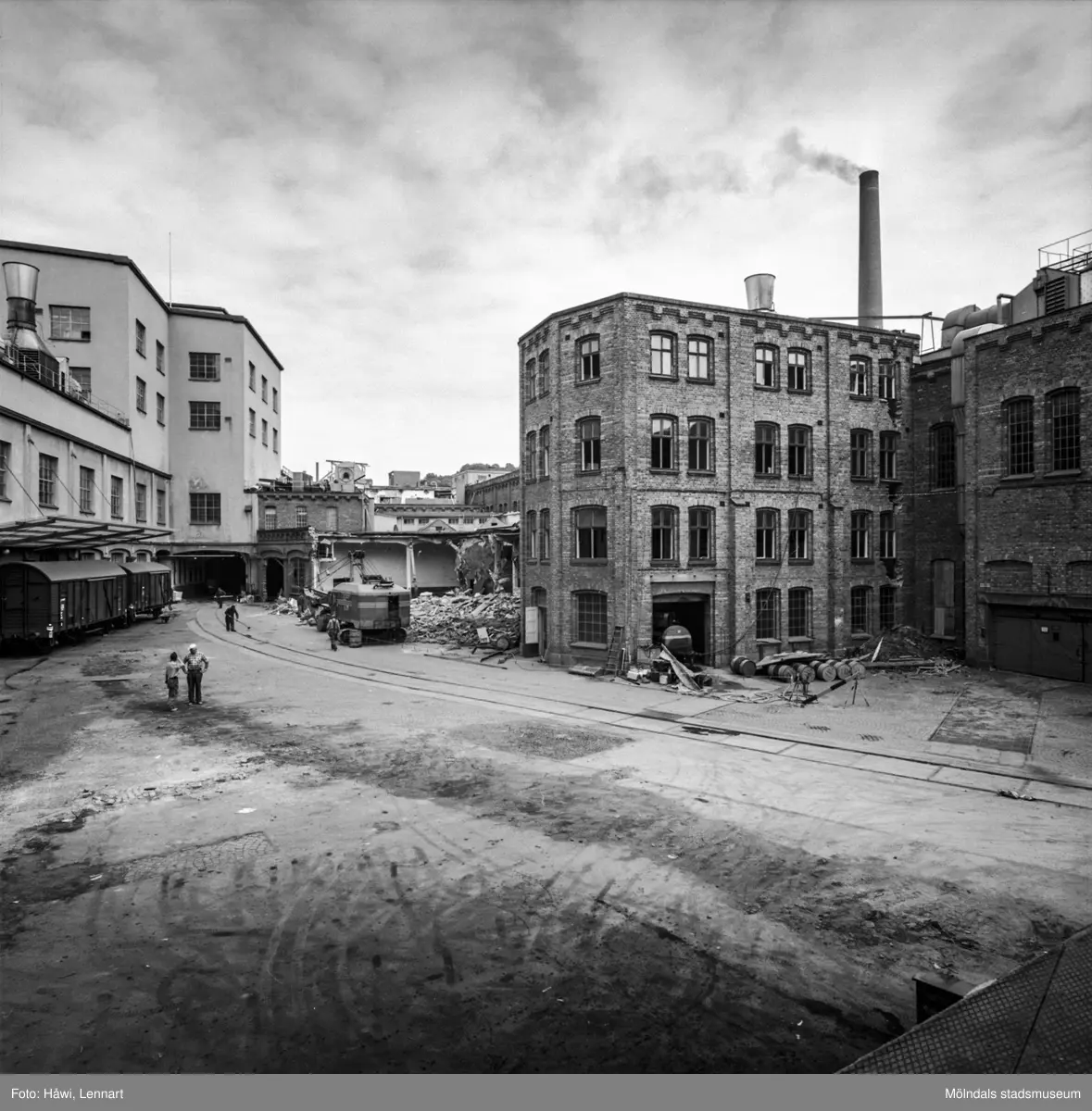 Rivning av byggnad nr 9, 10 och 11 på pappersbruket Papyrus i Mölndal, 10/6 1964.