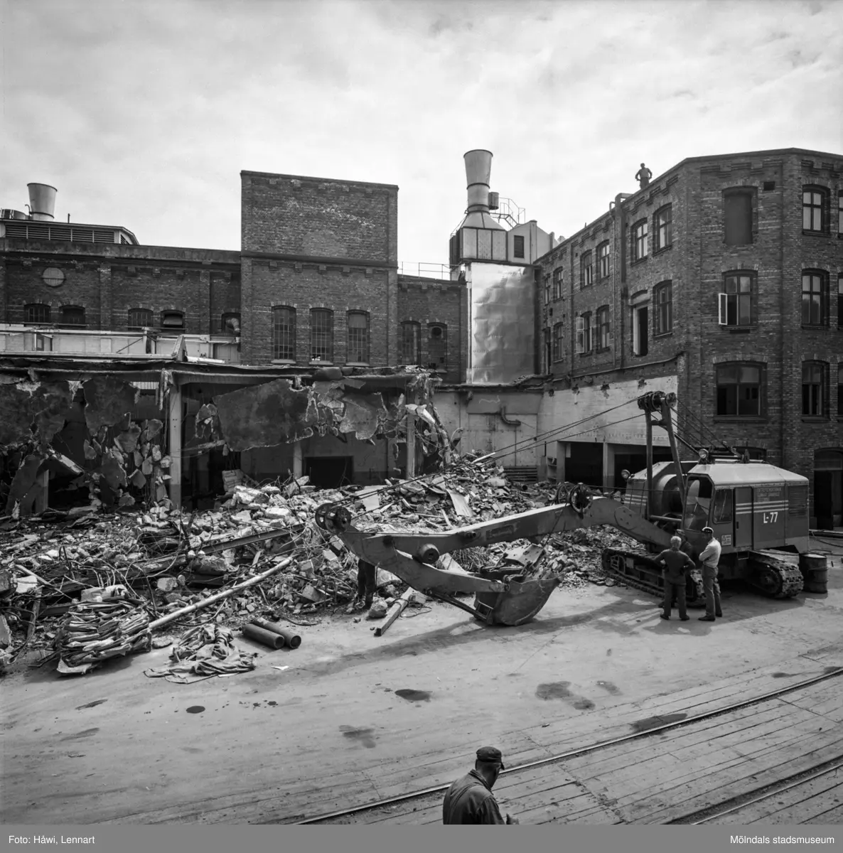 Rivning av byggnad nr 9, 10 och 11 på pappersbruket Papyrus i Mölndal, 10/6 1964.