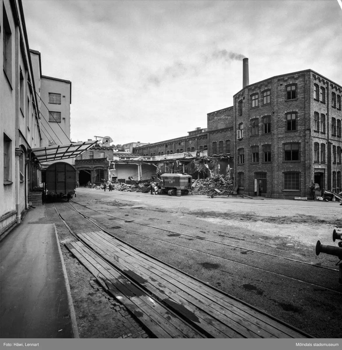 Rivning av byggnad nr 9, 10 och 11 på pappersbruket Papyrus i Mölndal, 10/6 1964.