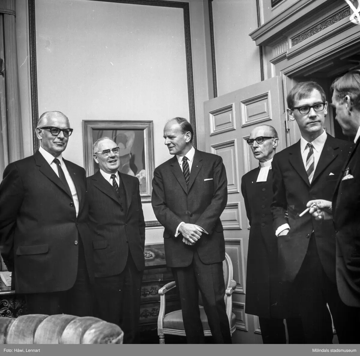 Utdelning av minnesgåvan vid pappersbruket Papyrus 75-årsjubileum. Middag på Villa Papyrus i Mölndal, 31/10 1970.