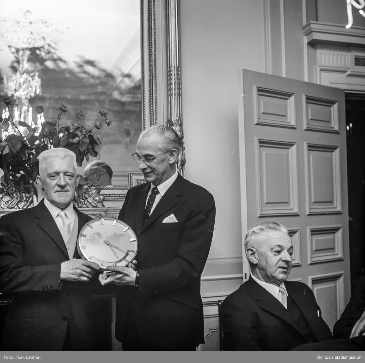 Utdelning av minnesgåvan vid pappersbruket Papyrus 75-årsjubileum. Middag på Villa Papyrus i Mölndal, 31/10 1970.