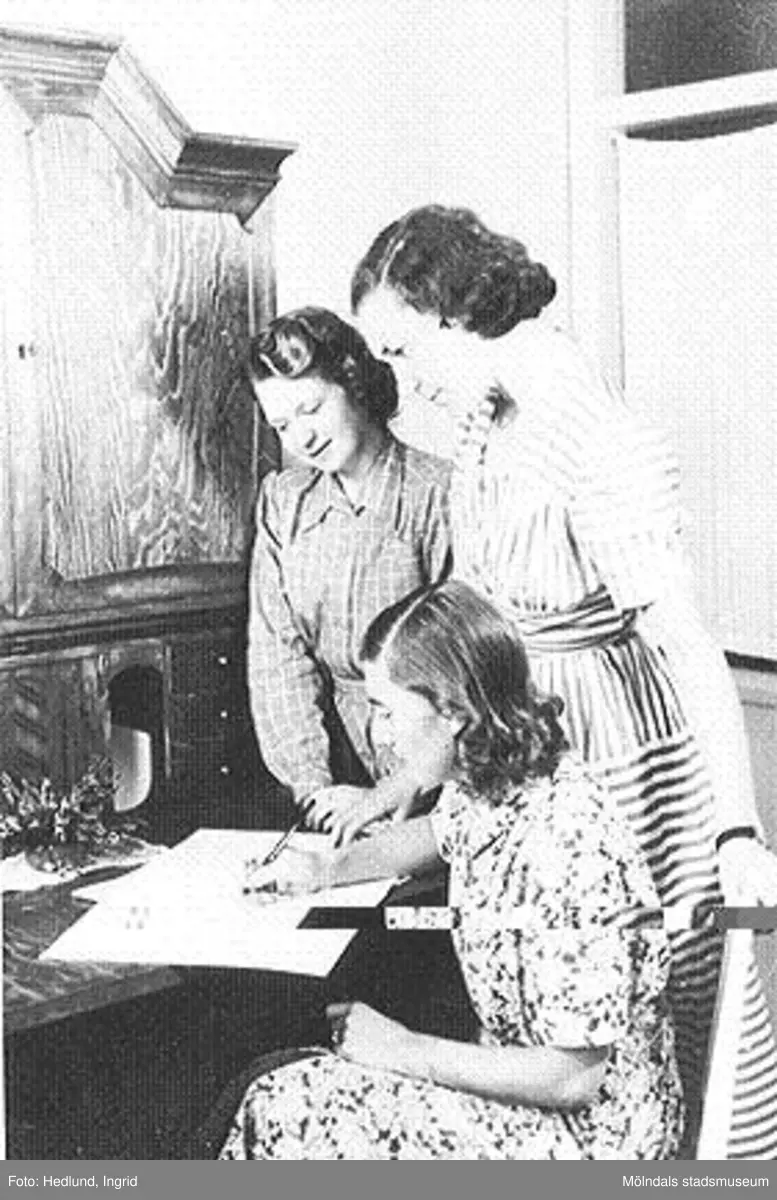 Tre förskollärare som arbetar vid ett daghem i Guldheden, Göteborg. Bilden är tagen på sent 1940-tal.