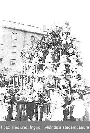 Daghem vid Guldheden i Göteborg år 1948. Barn och fröknar vid en klätterställning.