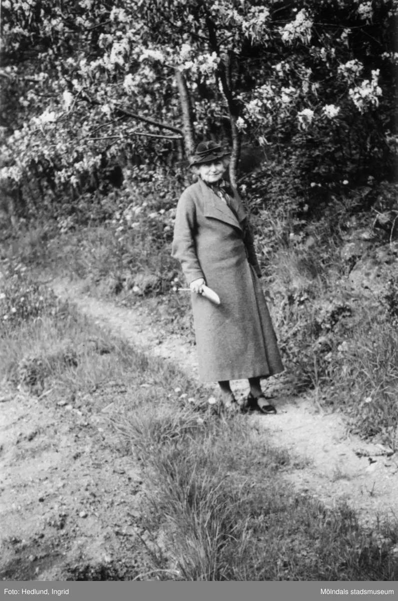Äldre kvinna i en park. Troligtvis Norrköping 1935-1937.